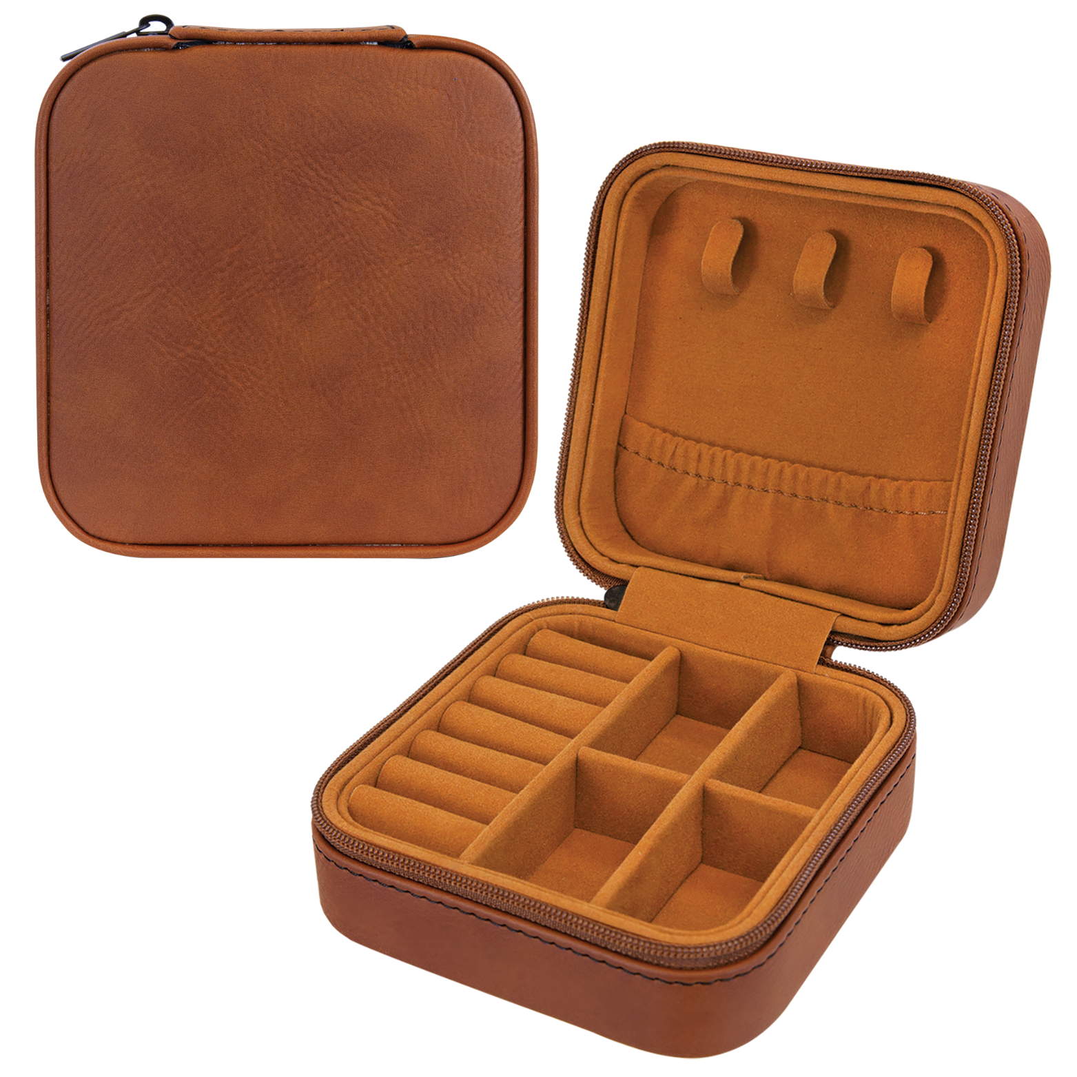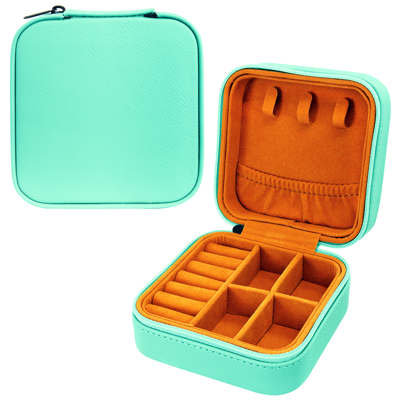 Our travel jewelry box is the perfect companion for any trip. This compact size jewelry box fits in your suitcase or purse and has compartments for chains, rings, earrings and whatever you want to take with you! It’s both fashionable and functional for keeping your jewelry secure and tangle-free while traveling.