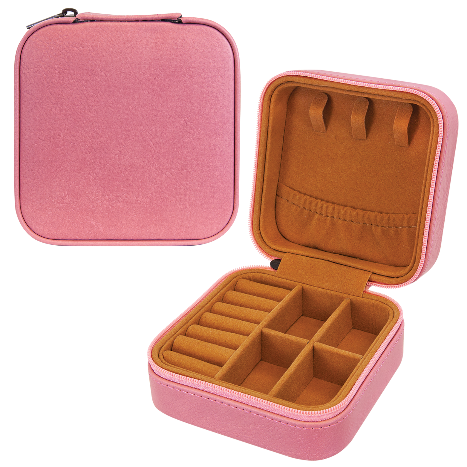 Our travel jewelry box is the perfect companion for any trip. This compact size jewelry box fits in your suitcase or purse and has compartments for chains, rings, earrings and whatever you want to take with you! It’s both fashionable and functional for keeping your jewelry secure and tangle-free while traveling.